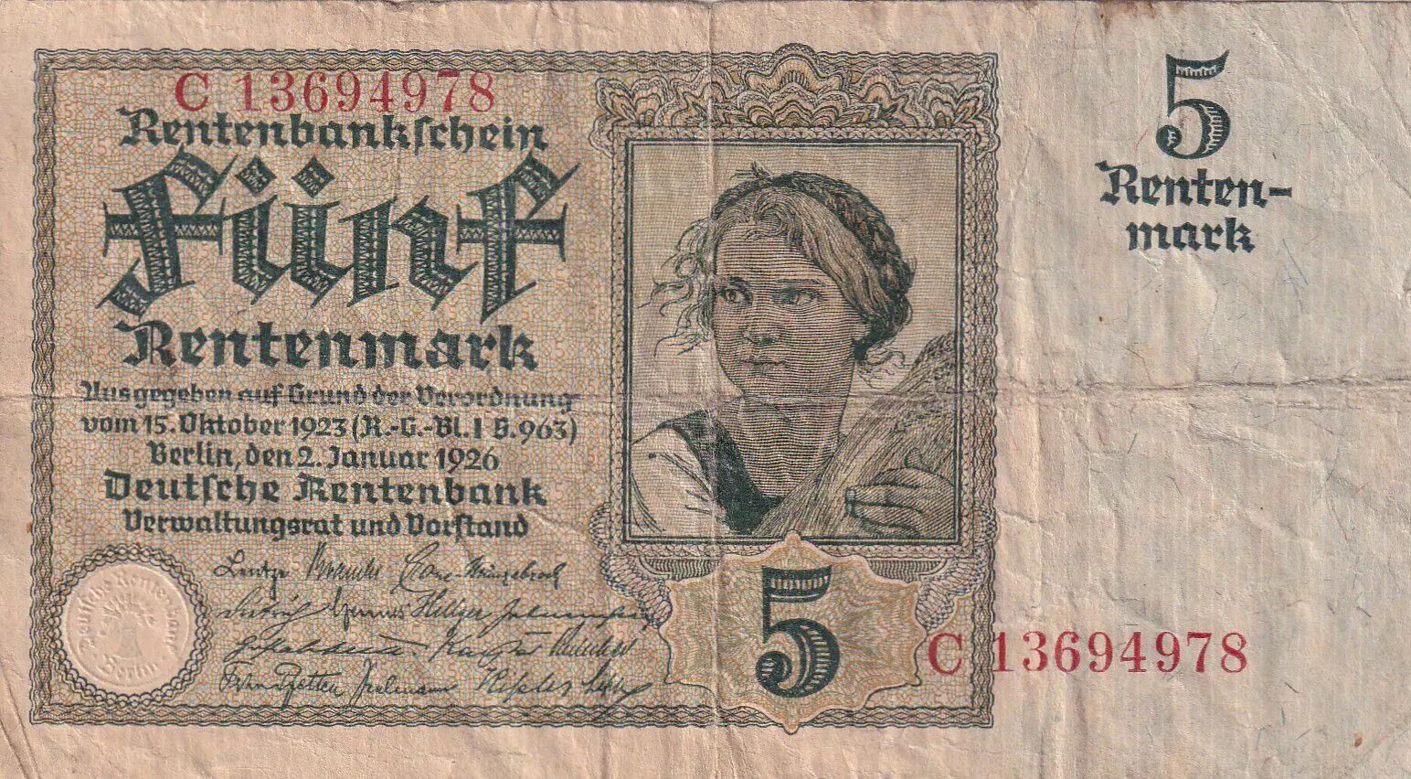 Billet Allemagne 5 Rentenmark - Jeune fille - Arbre - Lettre C - P.169