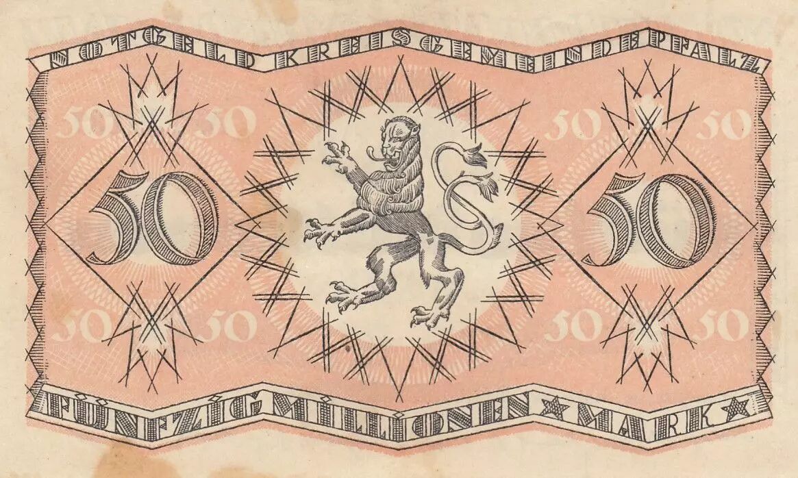 Billet Allemagne 50 000 000 Mark - Ville de Pfalz - Numéro 739131 - 1923