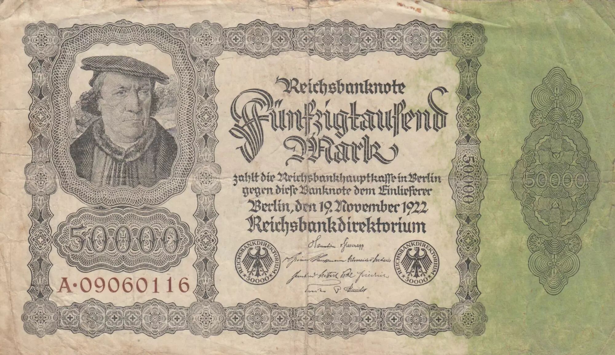 Billet Allemagne 50 000 mark - Reichsbanknote - Burgermaster brauweiler - Série A - 1922