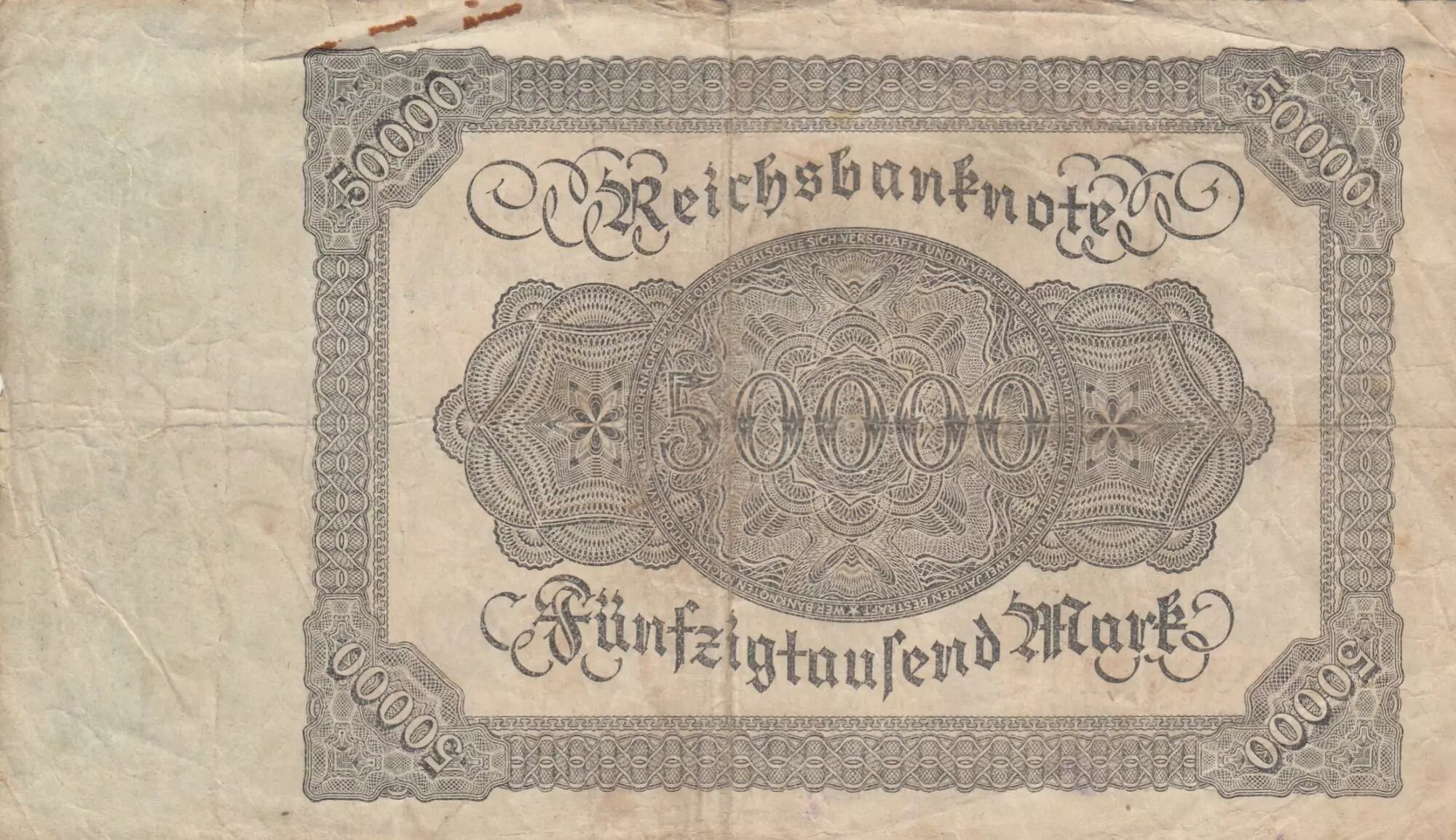 Accueil > Archivage > Allemagne 50 000 mark - Reichsbanknote - Burgermaster brauweiler - Série A - 1922