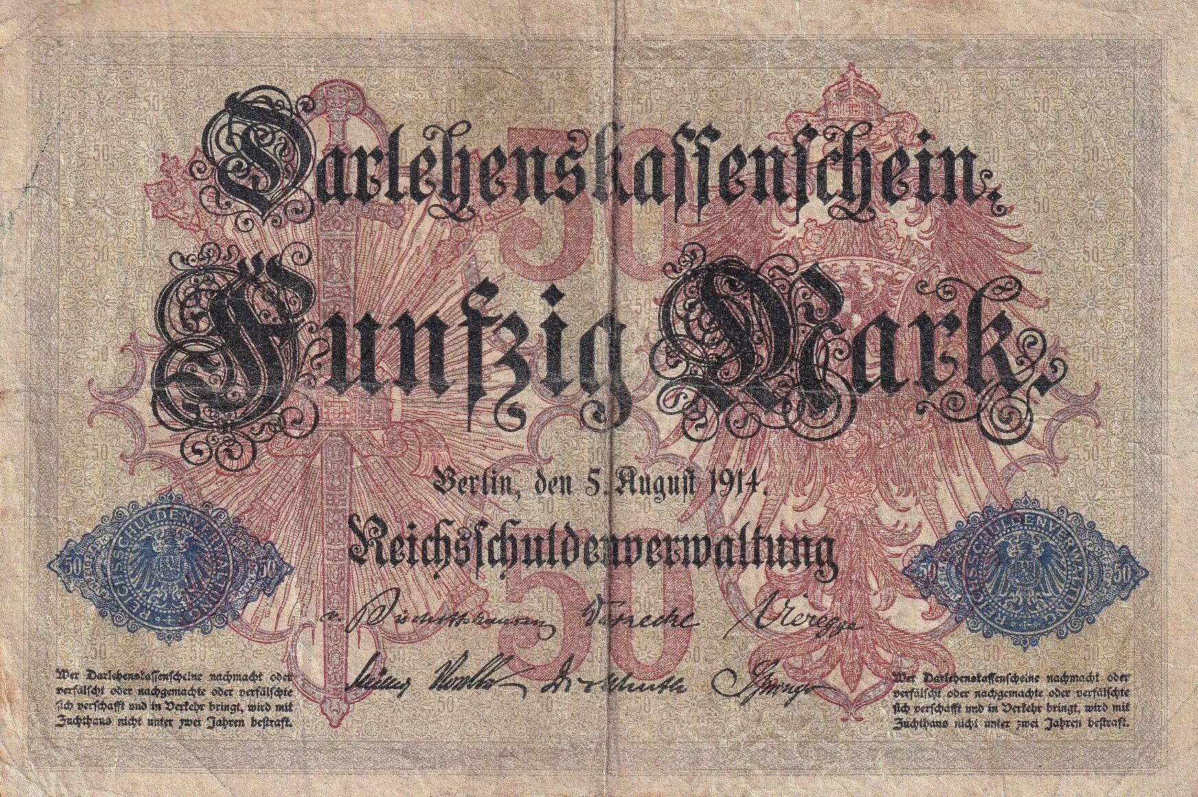 Billet Allemagne 50 Mark - Germania - 1914 - 6 digit - P.49a