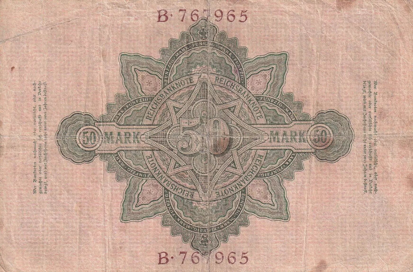 Billet Allemagne 50 Mark - Vert & Rose - 1906 - Série B - 6 digit - P.26a