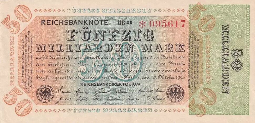 Billet Allemagne 50 Milliarden Mark - Reichsbanknote 1923 - Série UB 20 - * 095617