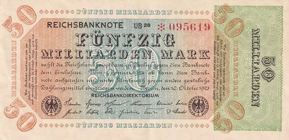 Billet Allemagne 50 Milliarden Mark - Reichsbanknote 1923 - Série UB 20 - * 095619