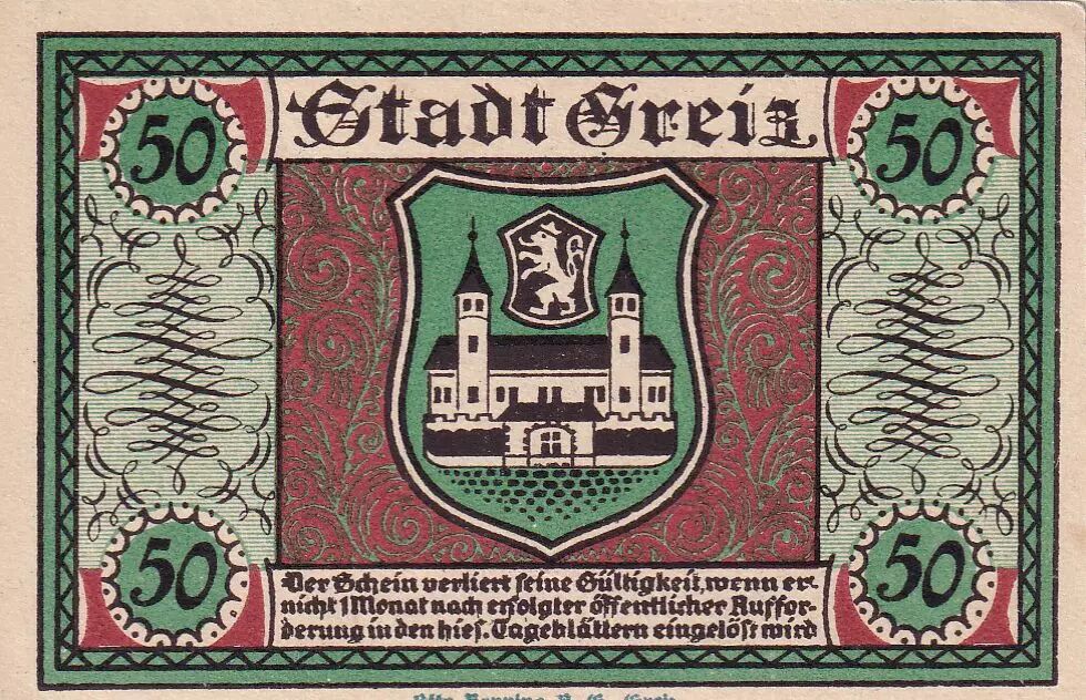 Accueil > Archivage > Allemagne 50 Pfennig - Greiz - Notgeld - 1921