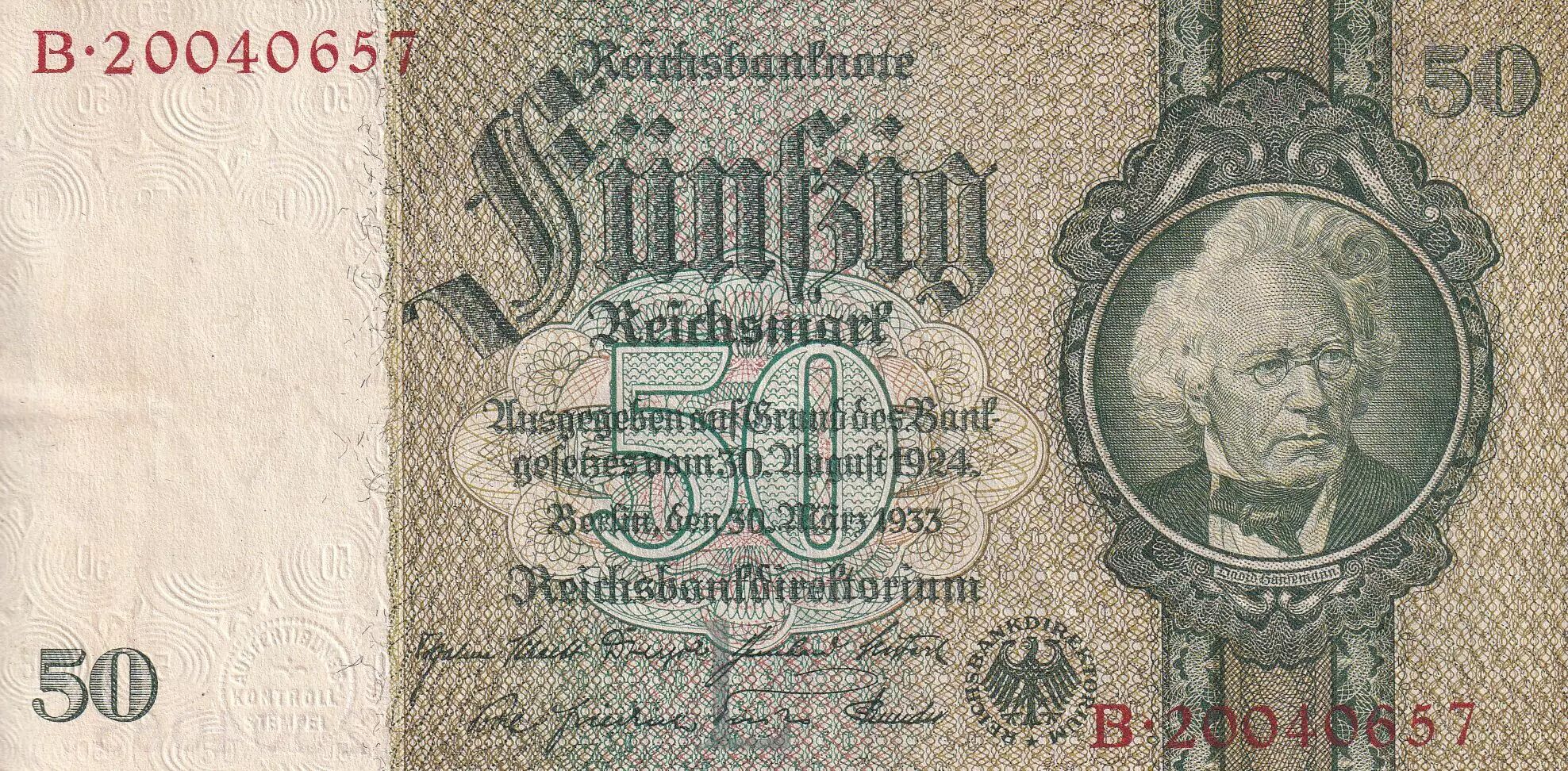Billet Allemagne 50 Reichsmark - David Hansemann - 1933 - Série B - P.182a