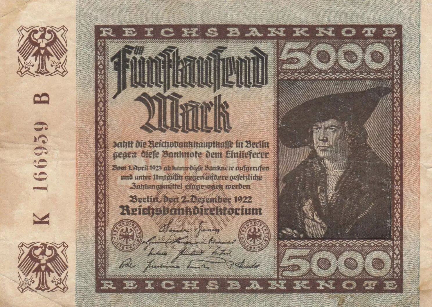 Billet Allemagne 5000 Mark - Portrait Marchand Imhof - Série K-B - 1922