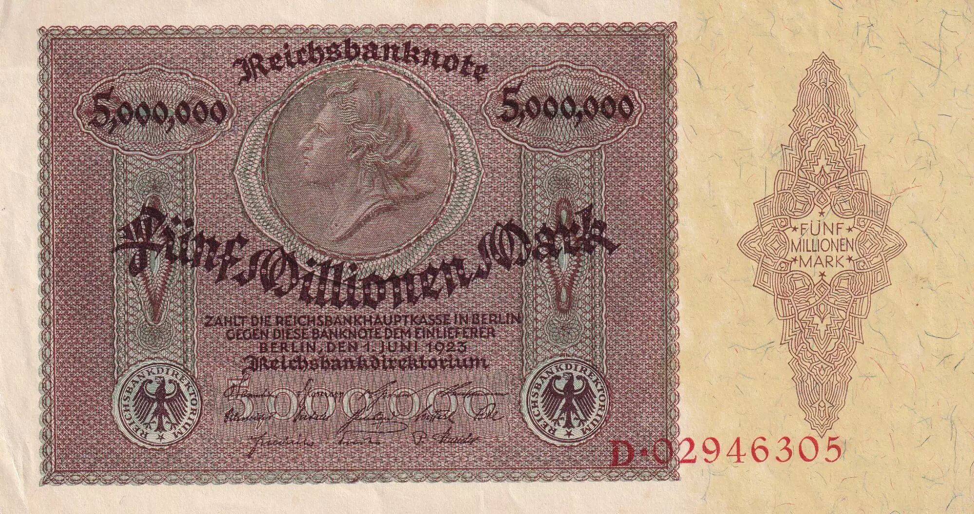 Billet Allemagne 5000000 Mark - Portrait de femme - 1923 - Série D - P.90