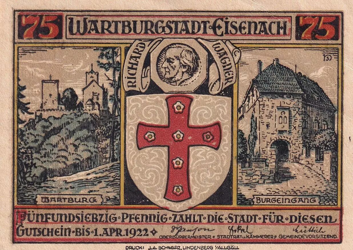 Accueil > Archivage > Allemagne 75 Pfennig - Eisenach - Notgeld - 1922