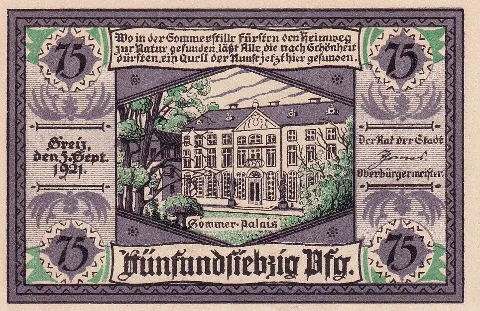 Accueil > Archivage > Allemagne 75 Pfennig - Greiz - Notgeld - 1921