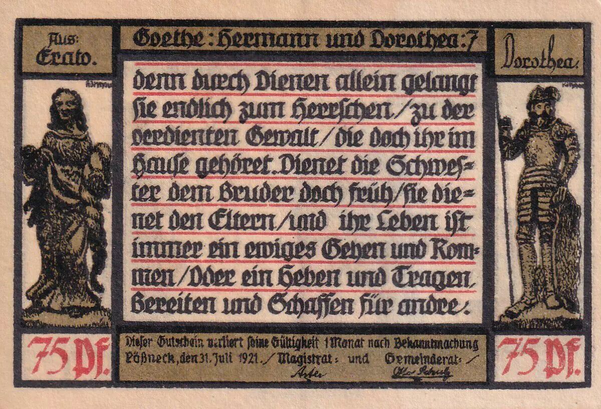 Accueil > Archivage > Allemagne 75 Pfennig - Pösseneck - Notgeld - 1921