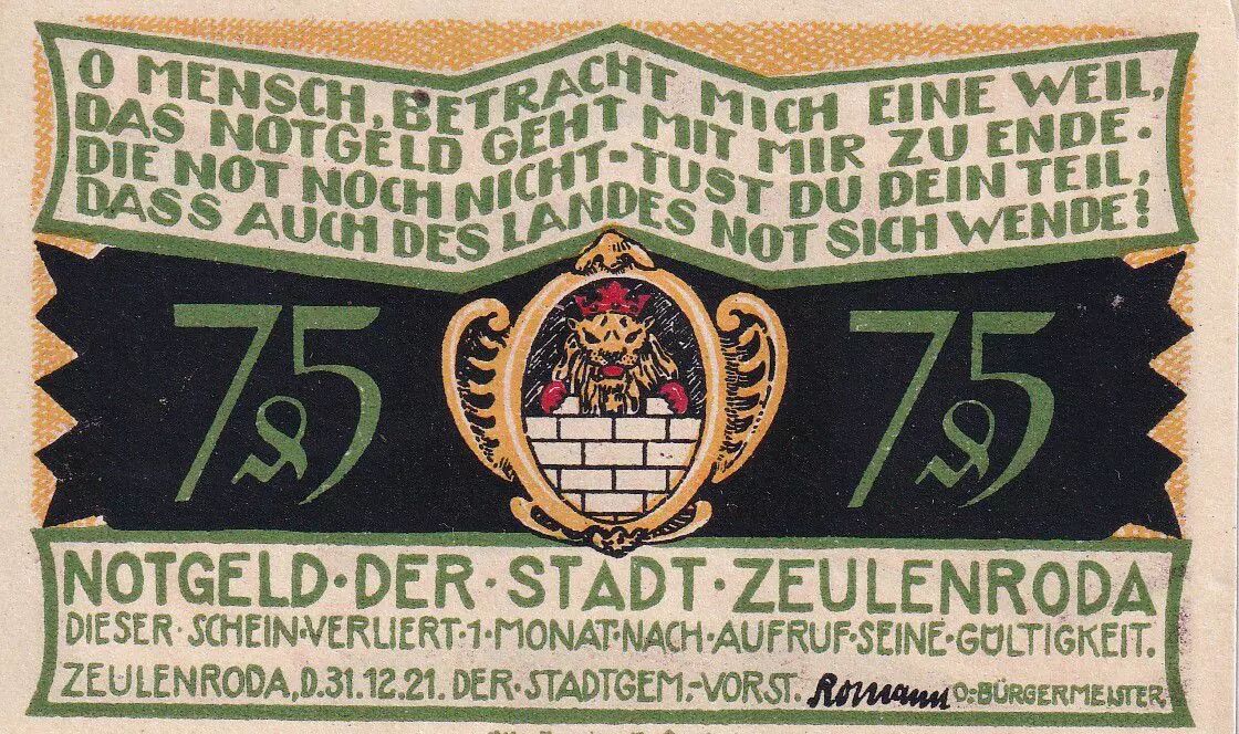 Accueil > Archivage > Allemagne 75 Pfennig - Zeulenroda - Notgeld - 1921