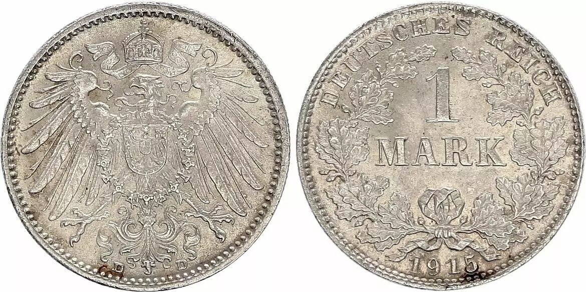Pièce Allemagne Allemagne, Wilhelm II - 1 Mark 1915 D Munich - SUP+