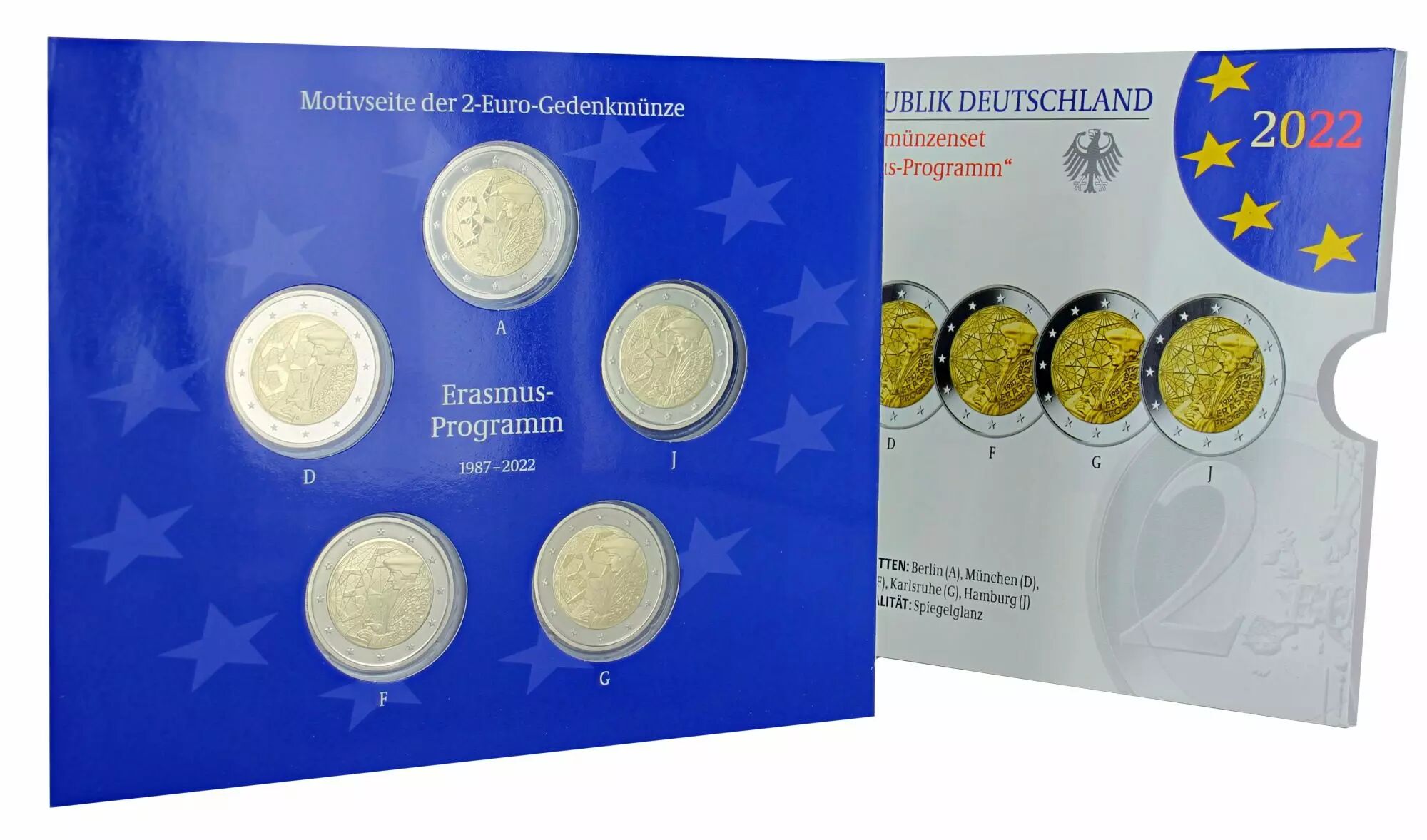 BLISTER BE 5 X 2 Euros Commémo. Allemagne 2022 - 35 ans du Programme ERASMUS (5 Ateliers)