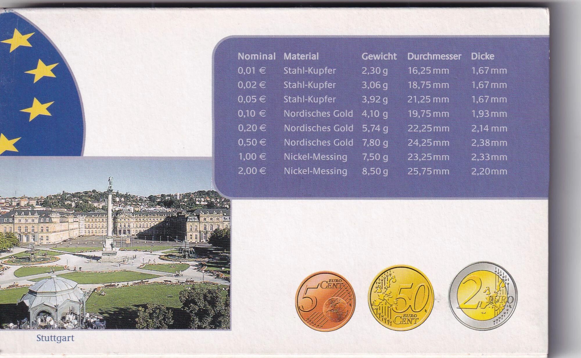 Ce coffret numismatique commémore l'année 2005 et comprend l'ensemble des pièces de circulation en euros émises par l'Allemagne, allant de 1 centime à 2 euros.