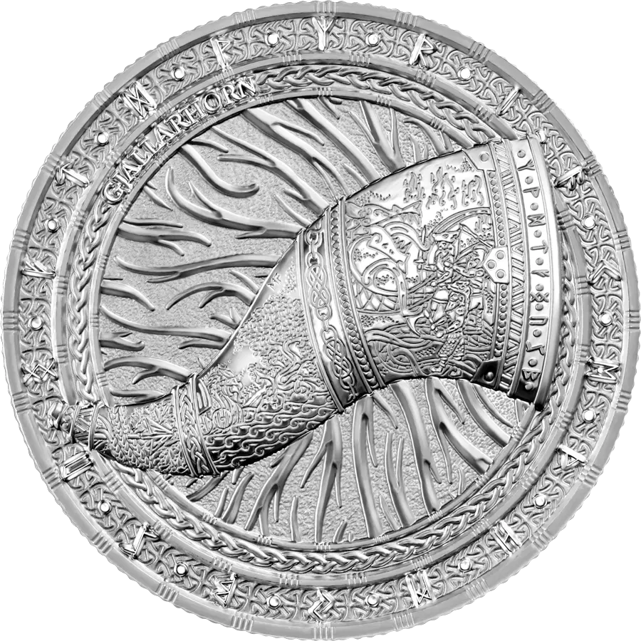 Gjallarhorn est le nom de la corne mythique de Heimdall, gardien d'Asgard et protecteur du pont Bifrost, qui relie le monde des dieux à Midgard, le royaume des humains. Heimdall, qui possède une ouïe et une vue exceptionnellement fines, veille à ce qu'aucune menace ne puisse pénétrer dans Asgard. Lors du Ragnarök, l'ultime bataille entre les dieux et les géants, c'est le son du Gjallarhorn qui alertera les dieux de l'imminence du malheur. Le son puissant du cor, qui se perd dans le ciel, résonnera dans les neuf mondes, signalant l'inévitable fin des temps.