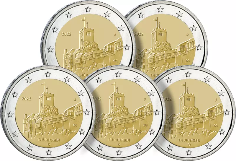 LOT 5 X 2 Euros Commémorative ALLEMAGNE 2022 5 ateliers