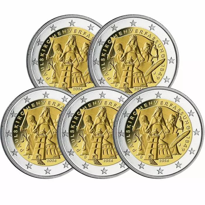Lot UNC 5 X 2 Euros Commémo. Allemagne 2024