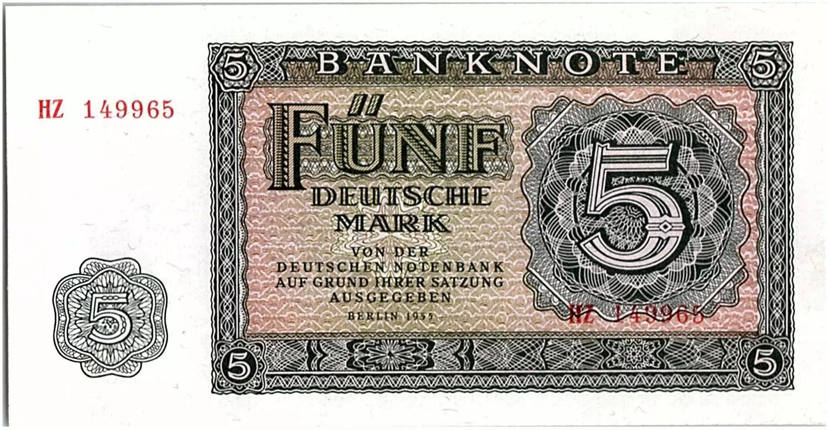 Accueil > Archivage > Allemagne (RDA) 5 Mark Gris et Brun clair - 1955