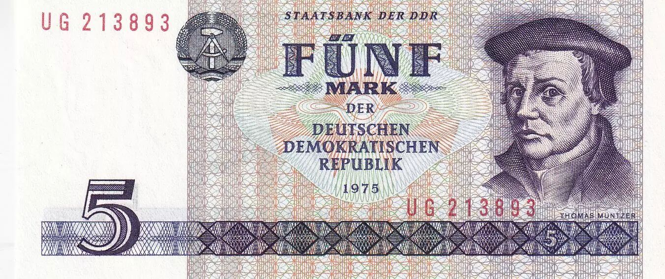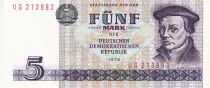 Billet Allemagne (RDA) 5 Mark - Thomas Muntzer - 1975 - Série UG - P.27