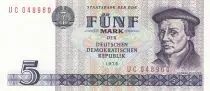 Billet Allemagne (RDA) 5 Mark - Thomas Muntzer - Moissonneuses batteuses - 1975 - Série UC - P.27