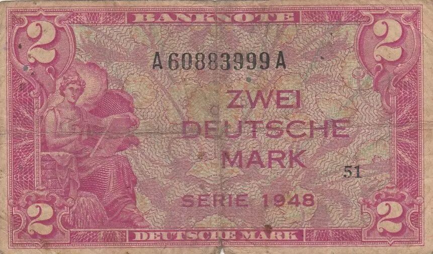 Accueil > Archivage > Allemagne (RFA) 2 D. Mark - 1948 - Série A - P.TB - P.3