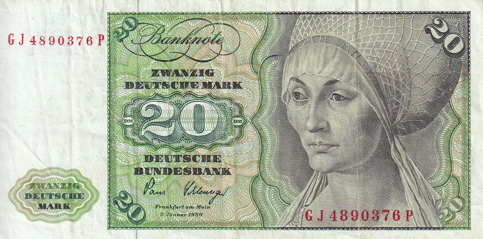 Billet Allemagne (RFA) 20 Deutsche Mark - Elsbeth Tucher - Instruments de Musique - 1980 - P32d