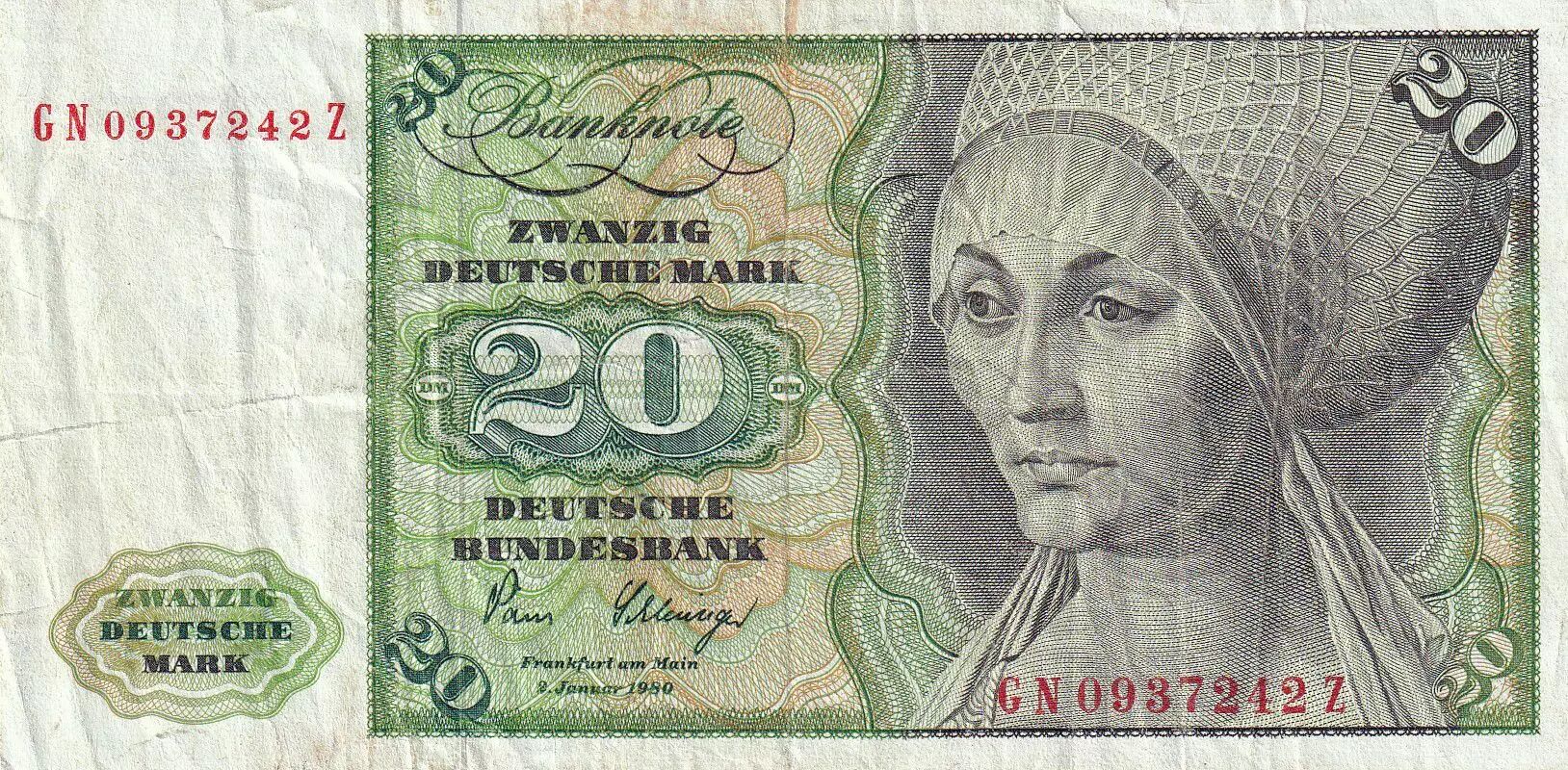 Accueil > Archivage > Allemagne (RFA) 20 Deutsche Mark - Elsbeth Tucher - Instruments de Musique - 1980 - Série GN - P32d