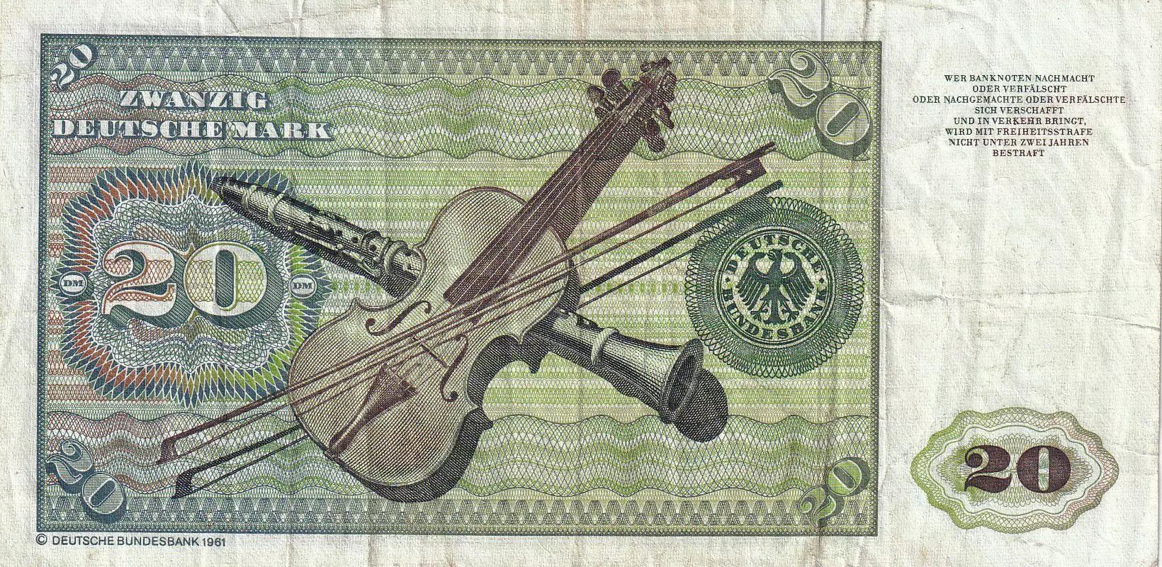 Billet Allemagne (RFA) 20 Deutsche Mark - Elsbeth Tucher - Instruments de Musique - 1980 - Série GN - P32d