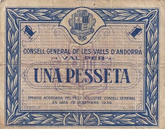 Banknote Andorra 1 Pesseta - 1936 - First Type Blue - 02506