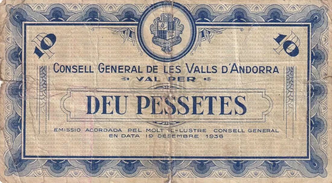 Banknote Andorra 10 Pessetes - 1936 - First Type Blue - 000267