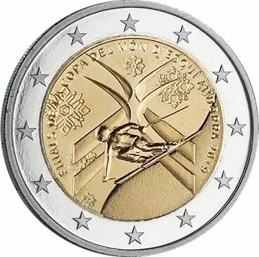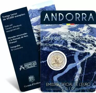 As the Principality welcomes the world's best skiers from 11 to 16 March 2019, the Andorran government has chosen to mark the event by dedicating the first commemorative 2-euro banknote of 2019 to the competition. It features the official competition logo and a skier in full descent with several snowflakes in the background.