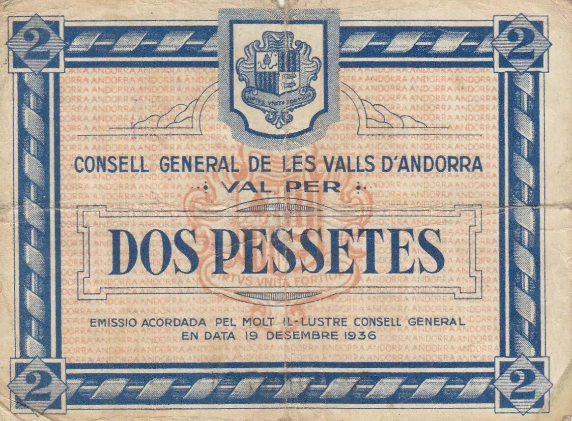 Banknote Andorra 2 Pessetes - 1936 - First Type Blue - 000773