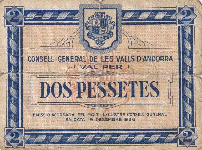 Banknote Andorra 2 Pessetes - 1936 - First Type Blue - 02961