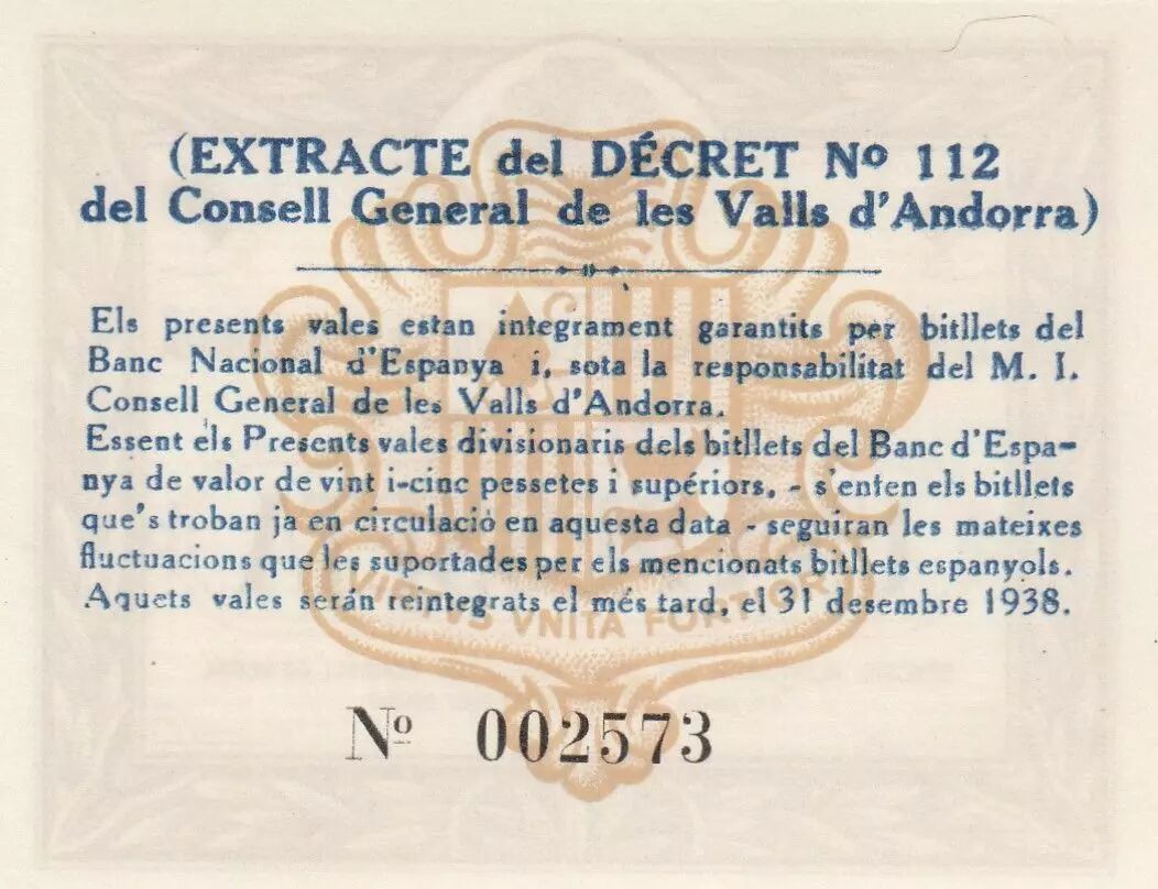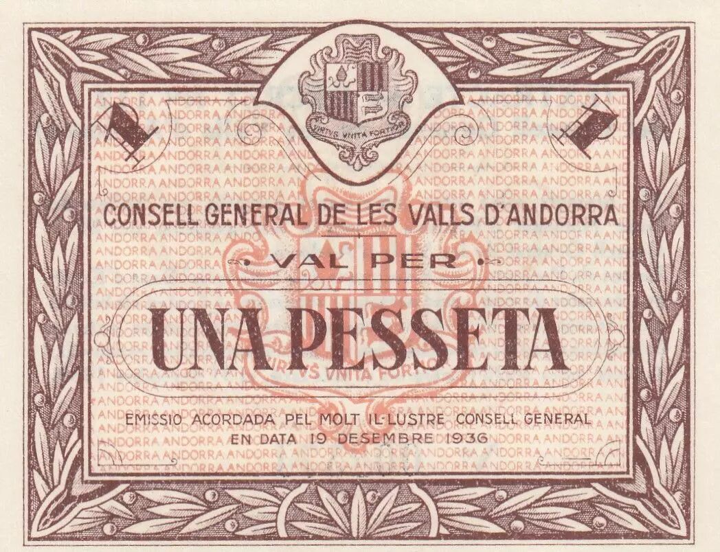 Billet Andorre 1 Pesseta - 1936