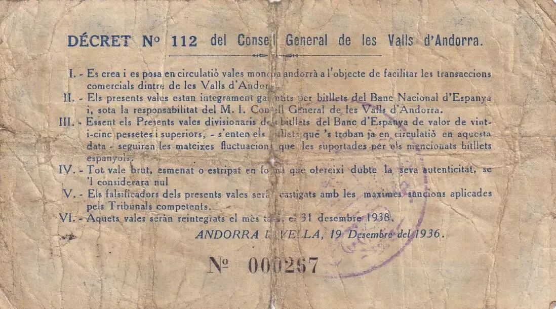 Billet Andorre 10 Pessetes - Premier type - Bleu - 1936 - 000267