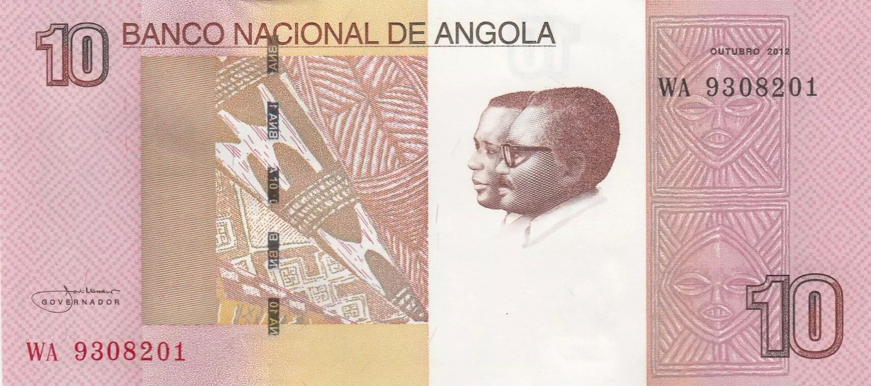 Ce billet de banque est émis par le Banco Nacional de Angola et présente une valeur nominale de 10 kwanzas. L'émission date de l'année 2012.