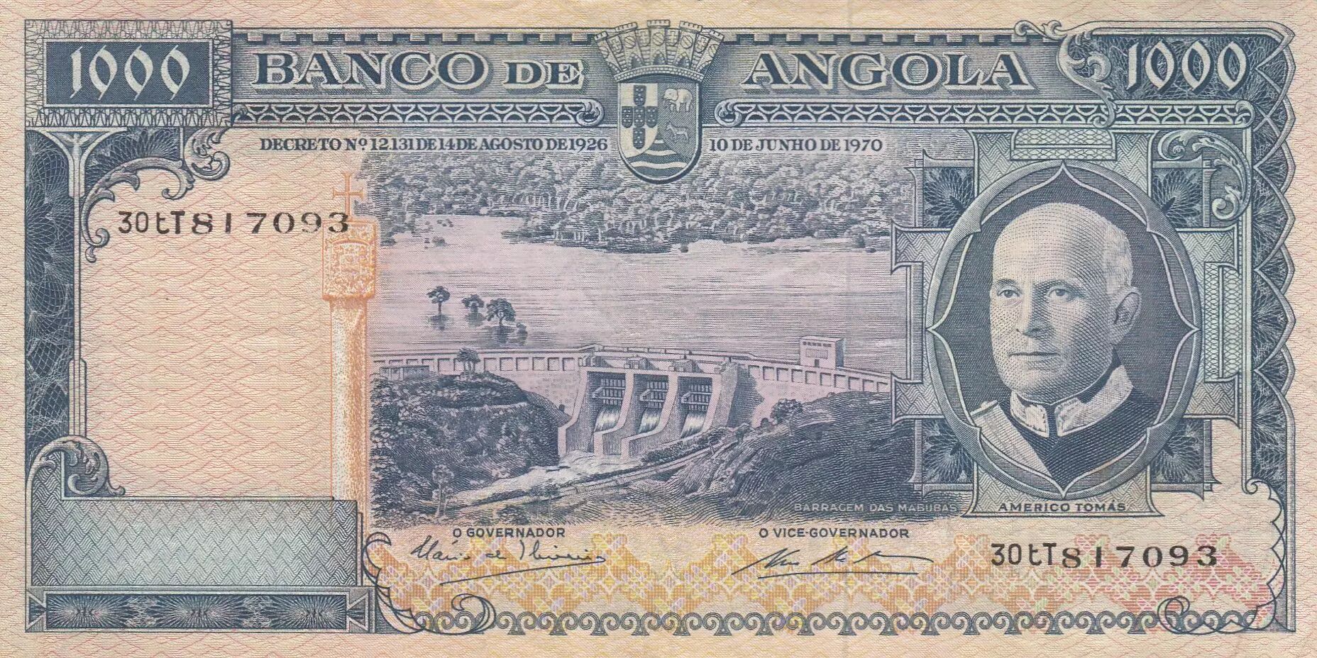 Billet Angola 1000 Escudos - A. Tomas - barrage - 10-06-1970 - Série 30tTS