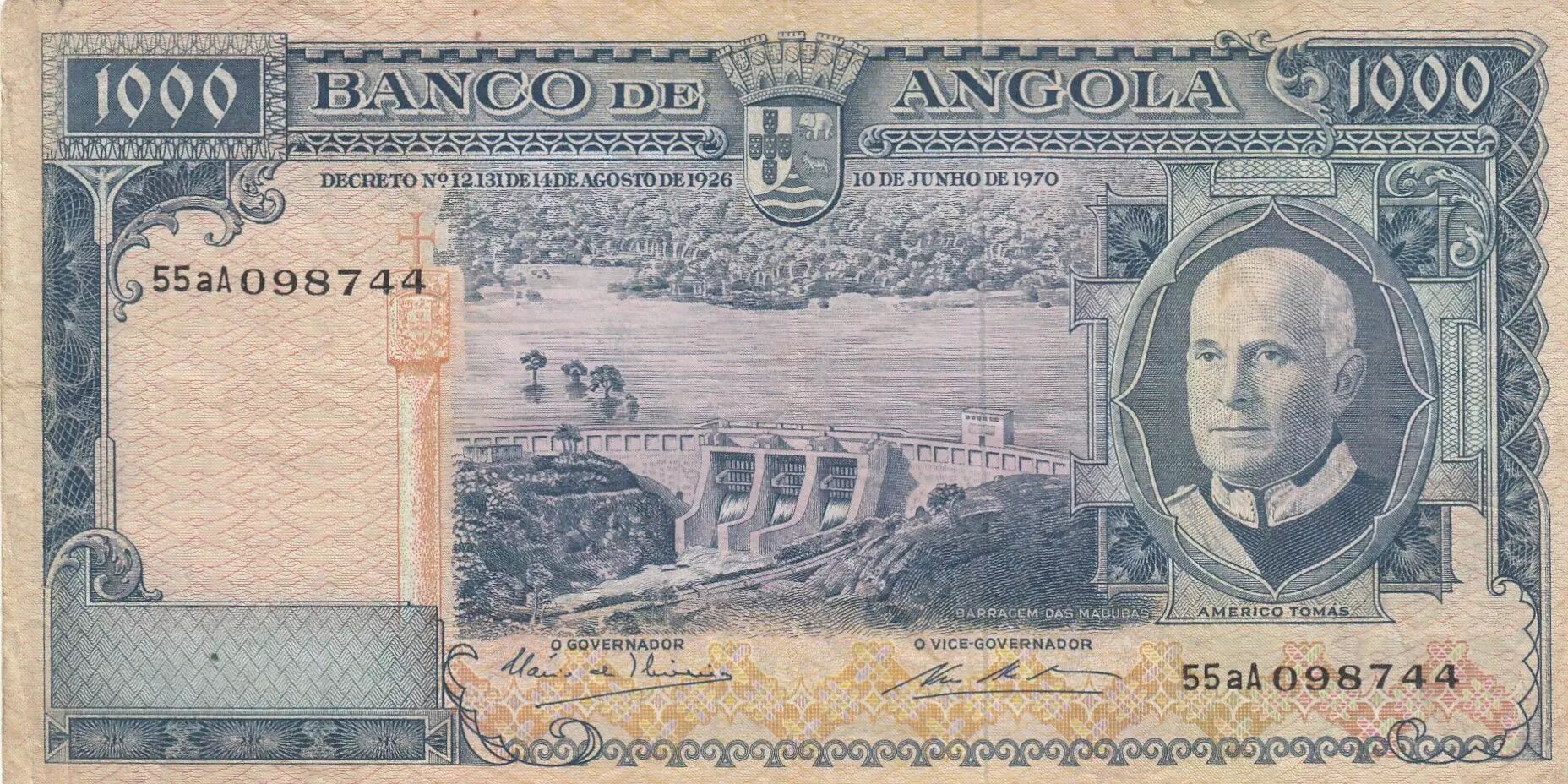 Billet Angola 1000 Escudos - A. Tomas - barrage - 10-06-1970 - Série 55aA