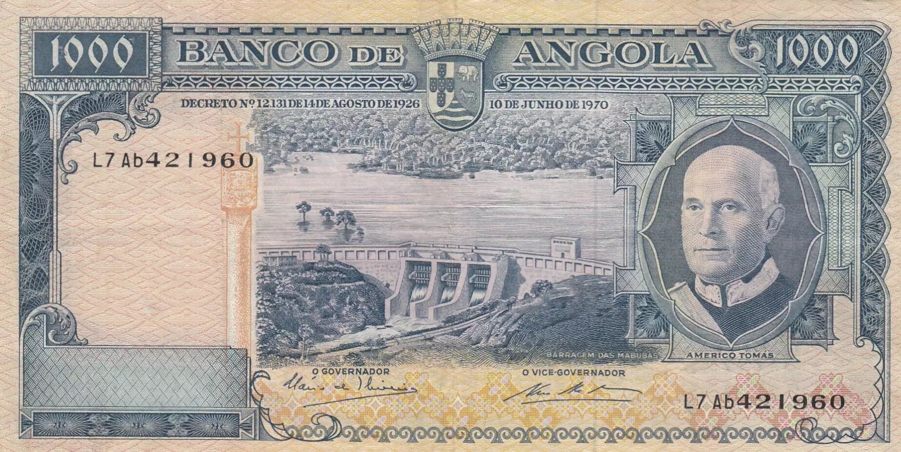 Billet Angola 1000 Escudos - A. Tomas - barrage - 10-06-1970 - Série L7Ab