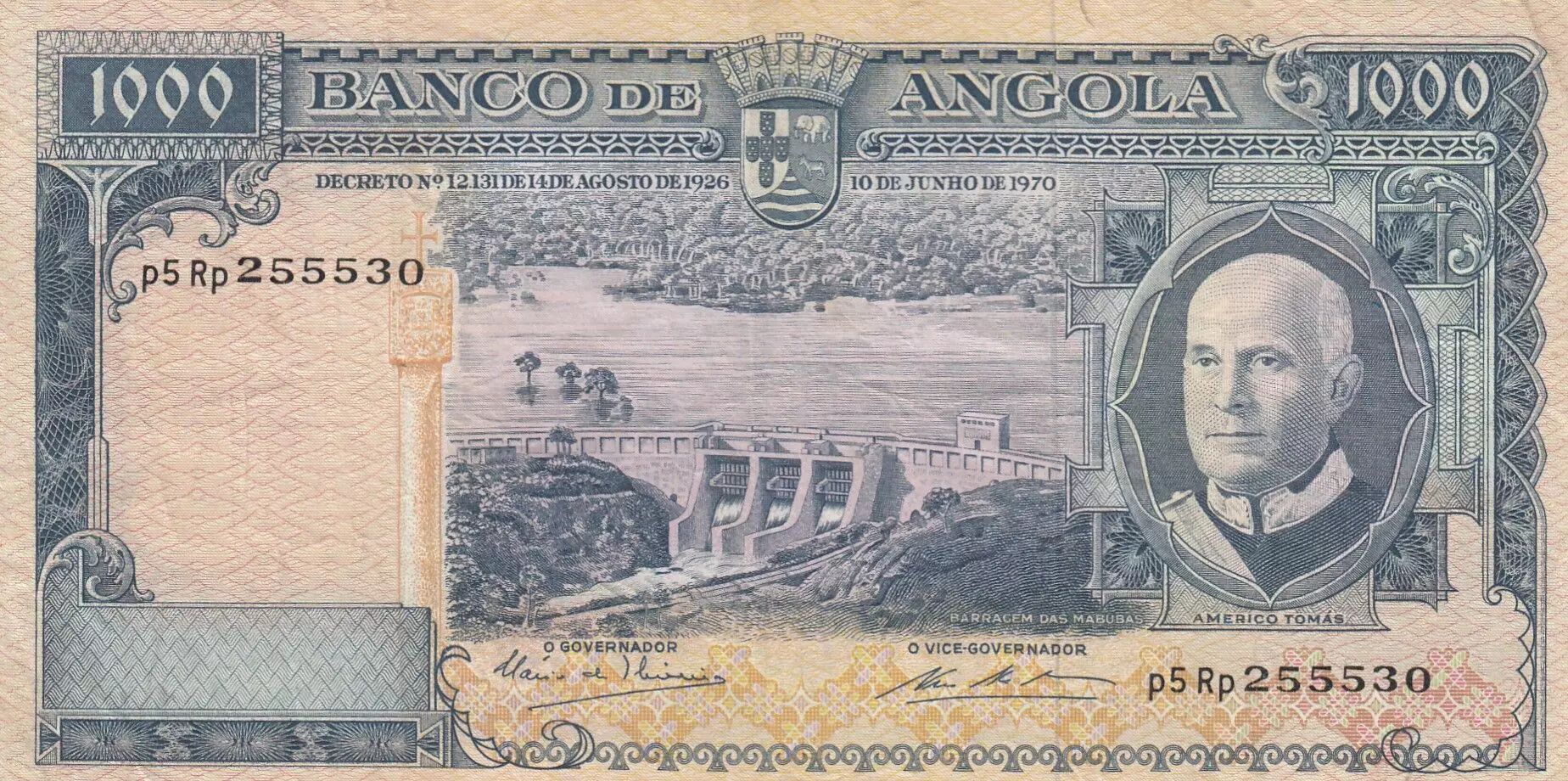 Billet Angola 1000 Escudos - A. Tomas - barrage - 10-06-1970 - Série p5Rp
