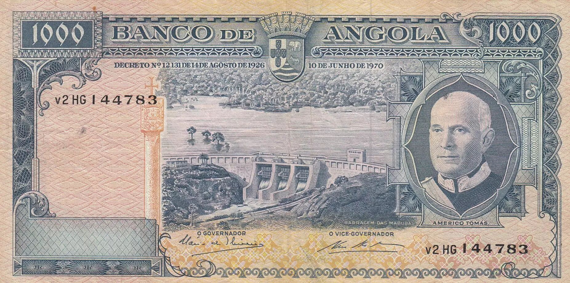 Billet Angola 1000 Escudos - A. Tomas - barrage - 10-06-1970 - Série v2HG
