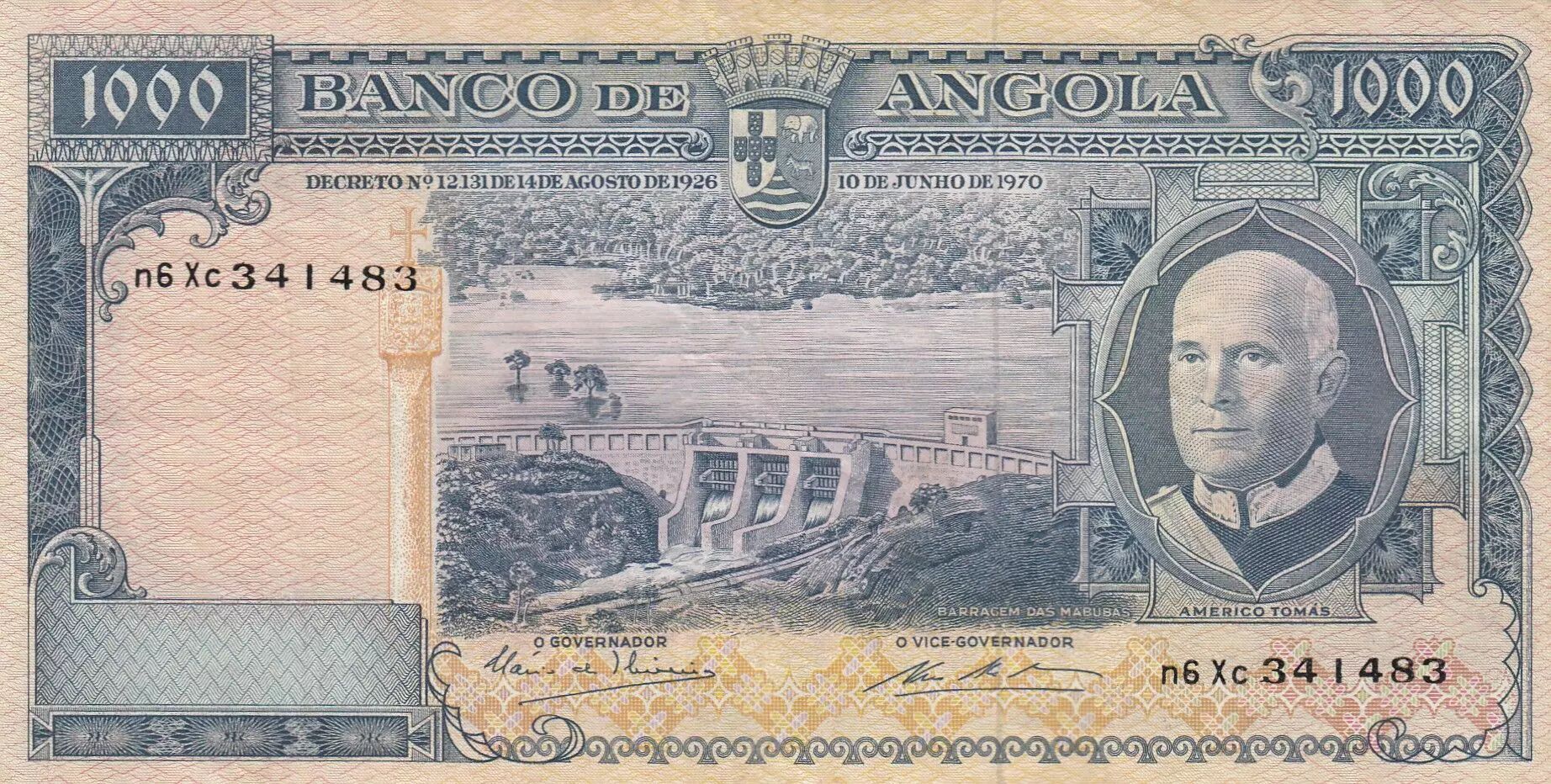 Home > World Banknotes > African Banknotes > Angola > Angola 1000 Escudos - A. Tomas - dam - 10-06-1970 - Serial n6Xc