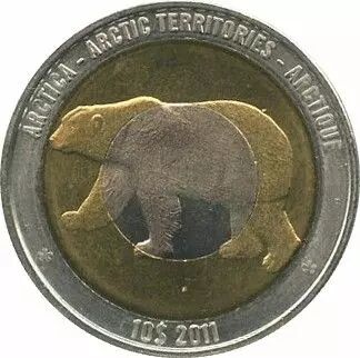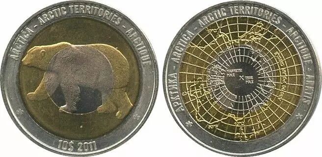 Pièce Antarctique et Arctique 10 Dollars Ours Polaire 2011 - Carte du Pôle (Jeton)