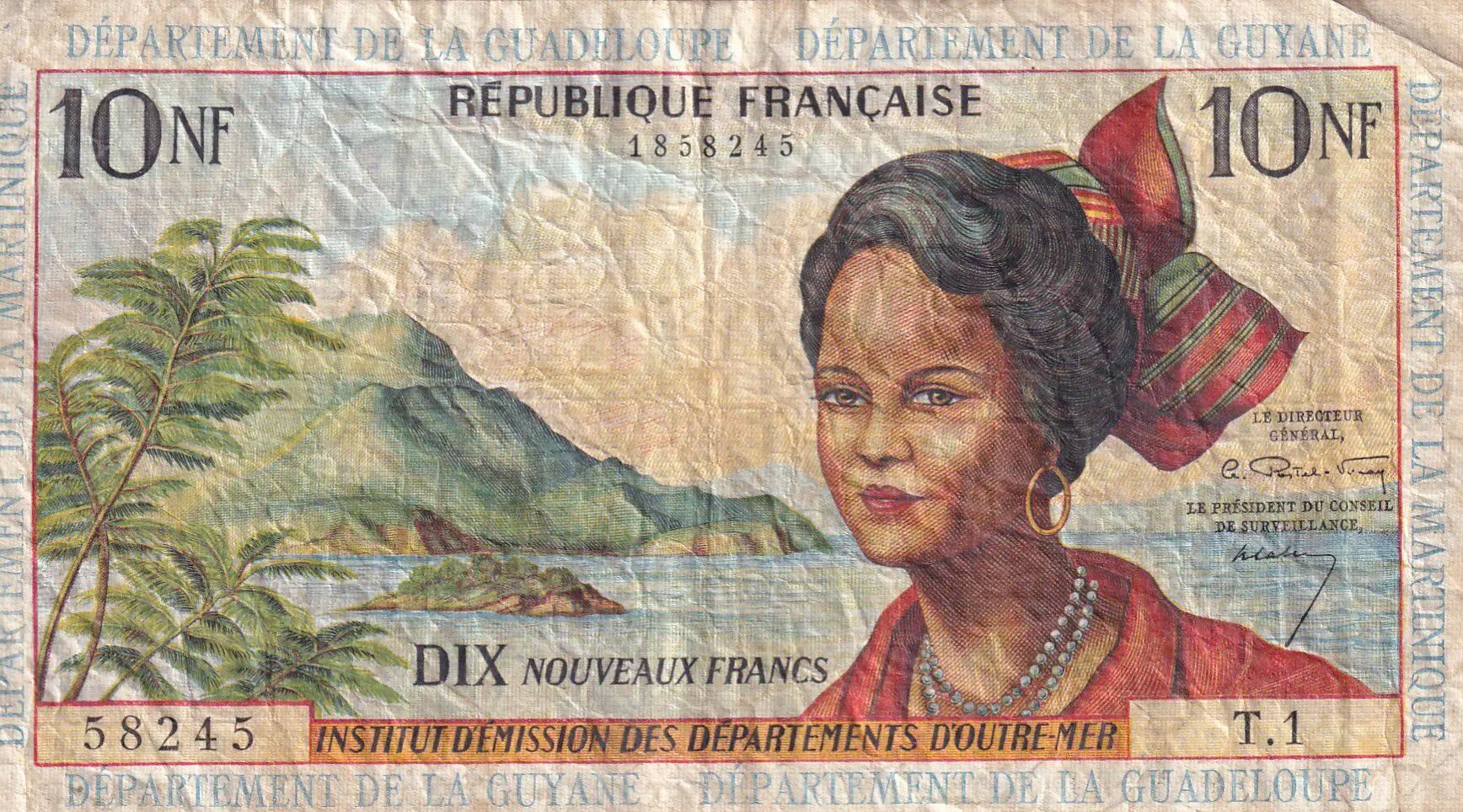 Accueil > Billets du Monde > Billets d'Amérique > Antilles Françaises > Antilles Françaises 10 NF - Jeune Antilliaise - 1962 - Série T.1 -P.5