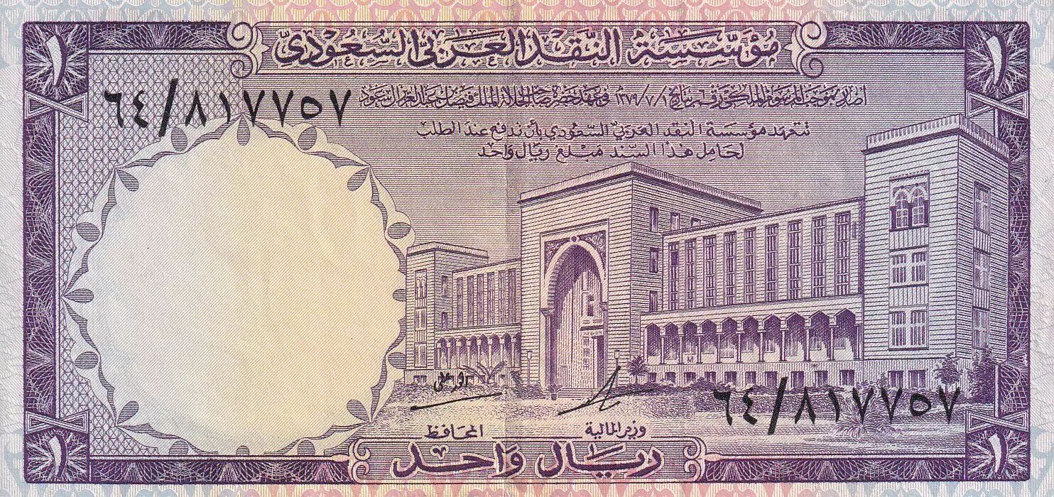 Billet Arabie Saoudite 1 Riyal - Immeuble du Gouvernement - Palmier - 1968 - SUP - P.11a