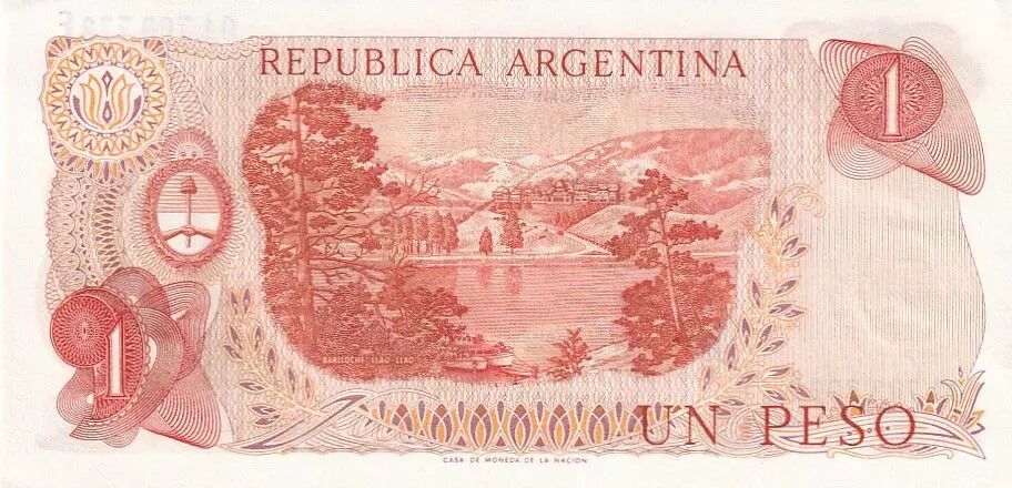 Home > World Banknotes > American Banknotes > Argentina > Argentina 1 Peso General Manuel Belgrano - Bariloche-Llao-Llao - Serial F