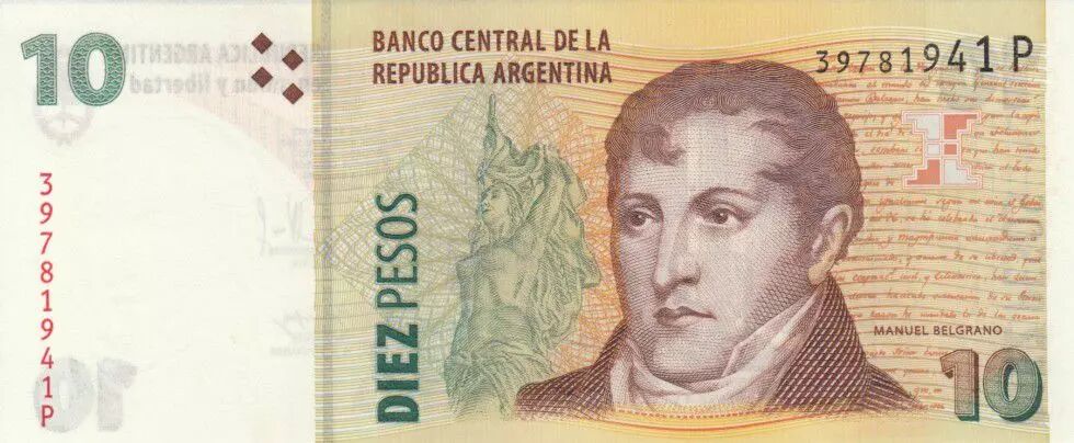 Banknote Argentina 10 Pesos M. Belgrano - Monument at Rosario - Serial P - 2012 - UNC - P.354b