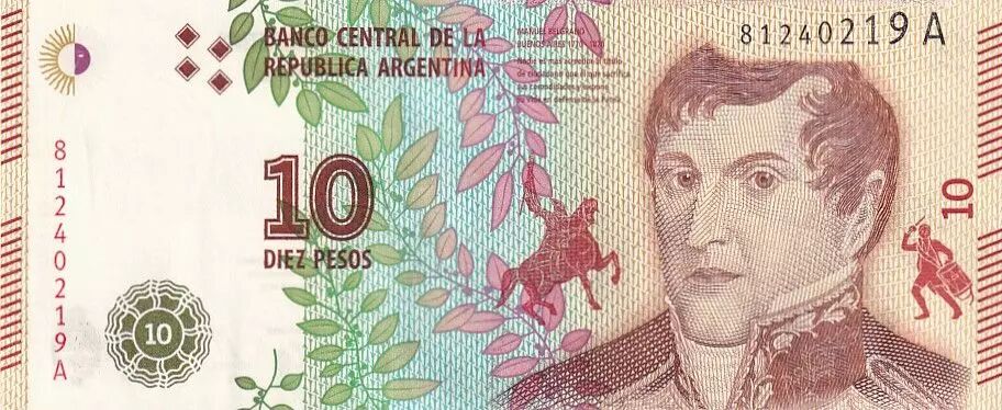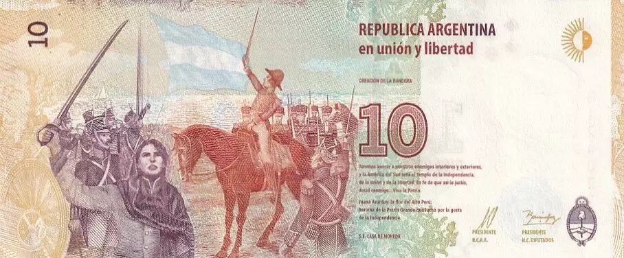 Banknote Argentina 10 Pesos Manuel Belgrano - Establishment of Bandera - 2016 - Serial A