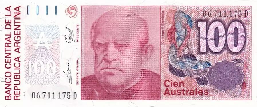 Banknote Argentina 100 Australes D. F. Sarmiento - Liberty - 1990 - Serial D